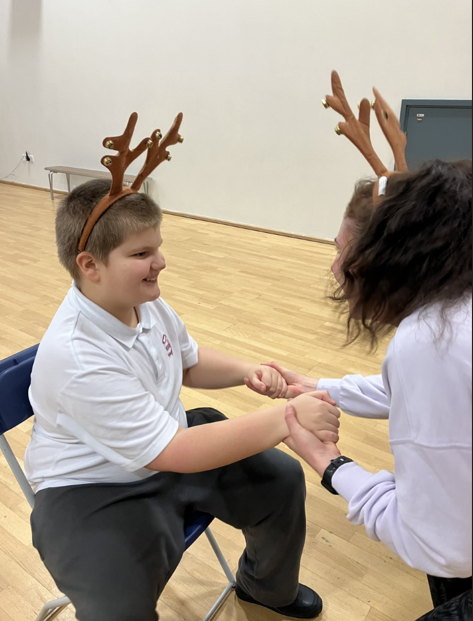 Red 1 have had a positive and productive half term of learning, everyone has shown great effort and made real progress taking on new challenges with confidence. Our story this term has been the enormous turnip which we have really enjoyed exploring all the resources. We have been accessing music therapy, therapy room, wheelchair swing, swimming and rebound this term which has been amazing for us all – music therapy has been a real hit! We’re proud of what has been achieved so far, and we are feeling excited, motivated and ready for more learning next half term! As part of our Christmas celebrations, Red 2 and Yellow 1 joined together to do a joint Christmas Shabang. We took part in a range of activities including parachute fun, dressing up as Rudolph, playing instruments, pass the parcel games and dancing.